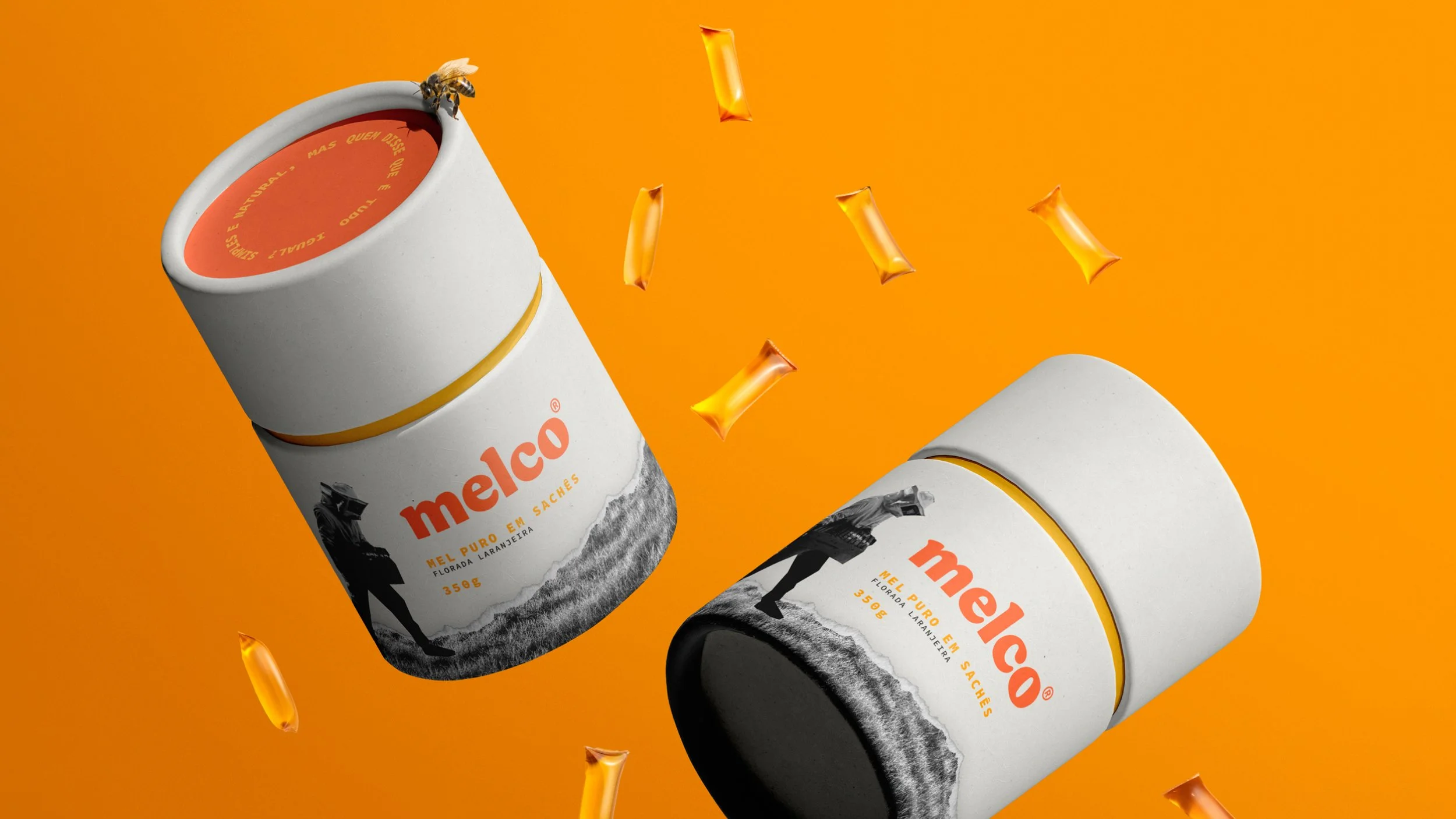 Na intenção de mostrar a grande variedade de elementos que fazem parte do universo da marca, como processos, animais, lugares e características do mel, utilizamos o processo de recorte e colagem que transforma imagens simples em algo novo e surpreendente, assim como o propósito da Melco.